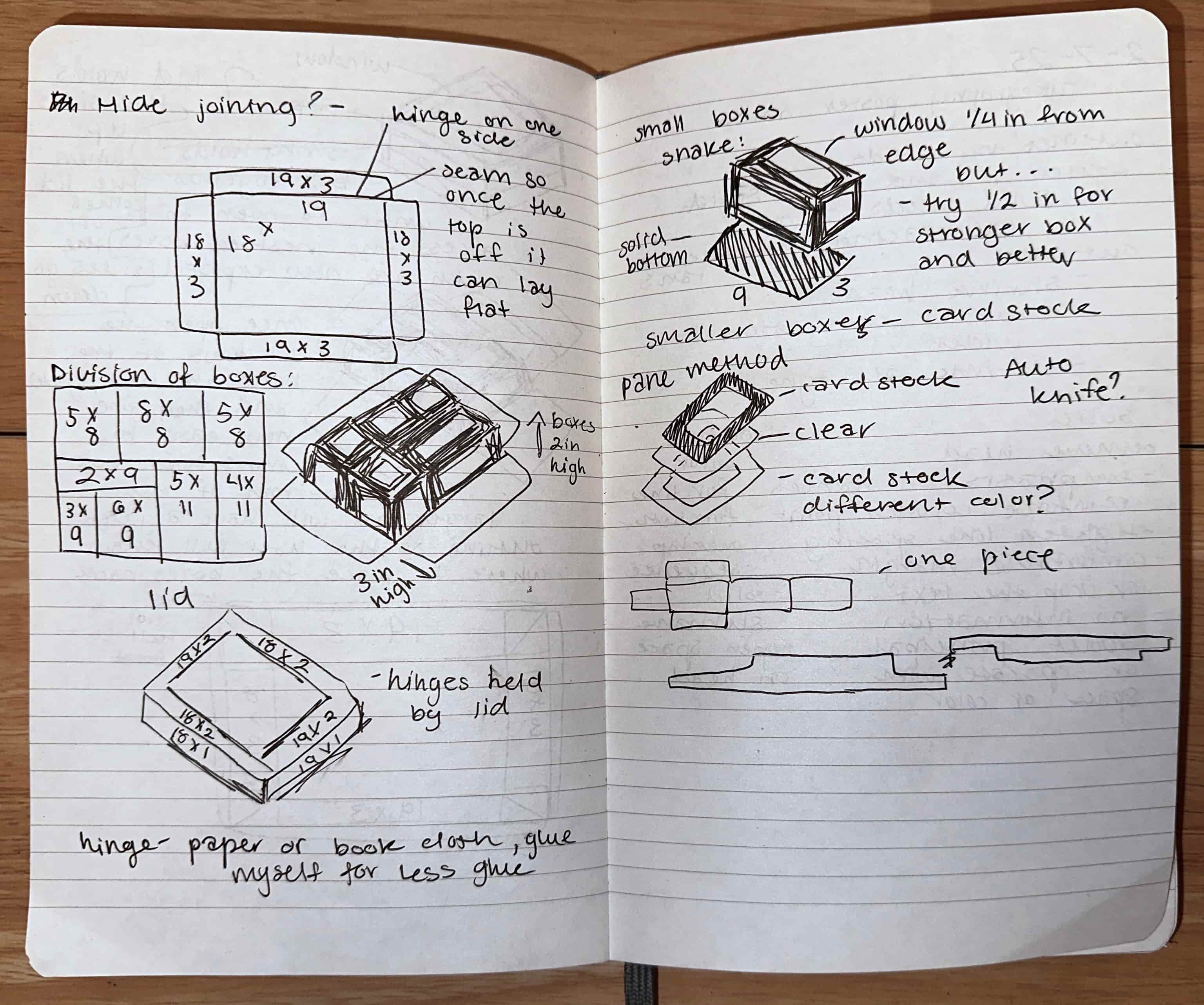 Smaller boxes: various sizes with a height of 2"