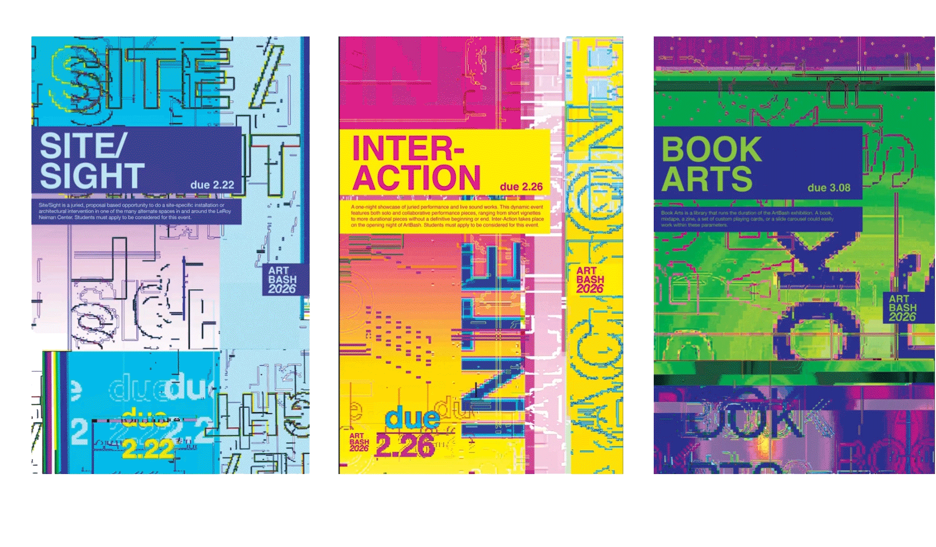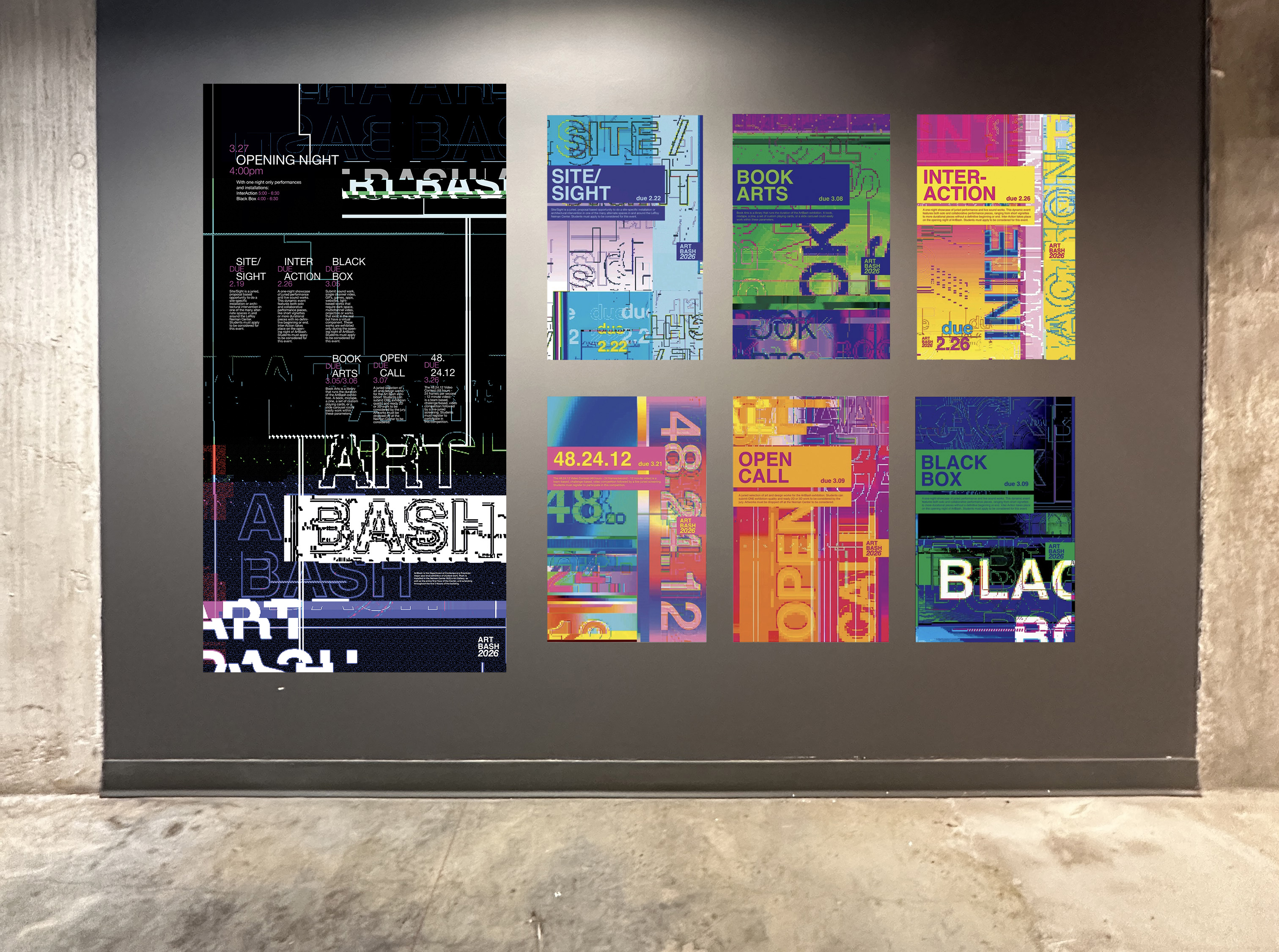 The Art Bash 2026 identity that I created captures the spirit of composing and subverting one’s artistic expression. The Contemporary Practices program embodies this by introducing students to new ways of creating and experiencing art. Students are uncertain of what will come of their journey, but each discovery sparks the next. This builds a momentum of exploration and growth. The identity embraces error as discovery. Glitching generates unexpected forms, colors, and compositions through continual iteration and chance. Expectations and methods of making are subverted by bending tools beyond their intended use to construct new results. In revealing what lies beneath the surface, each glitch uncovers hidden structures and possibilities, allowing something entirely new to emerge from what was once unseen. These moments of disruption and restoration compose a symphony that reveals the evolving portrait of one’s creative self.
