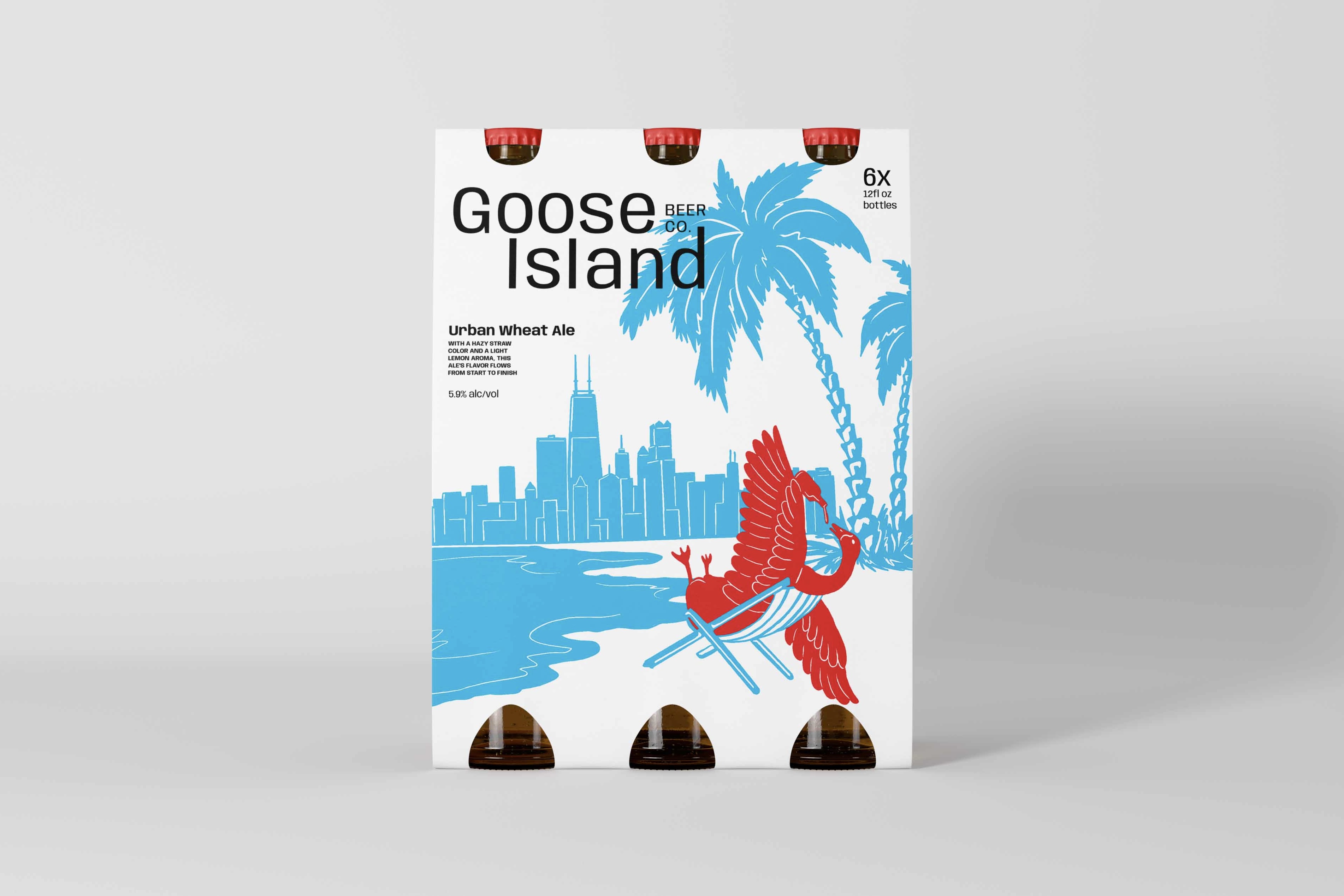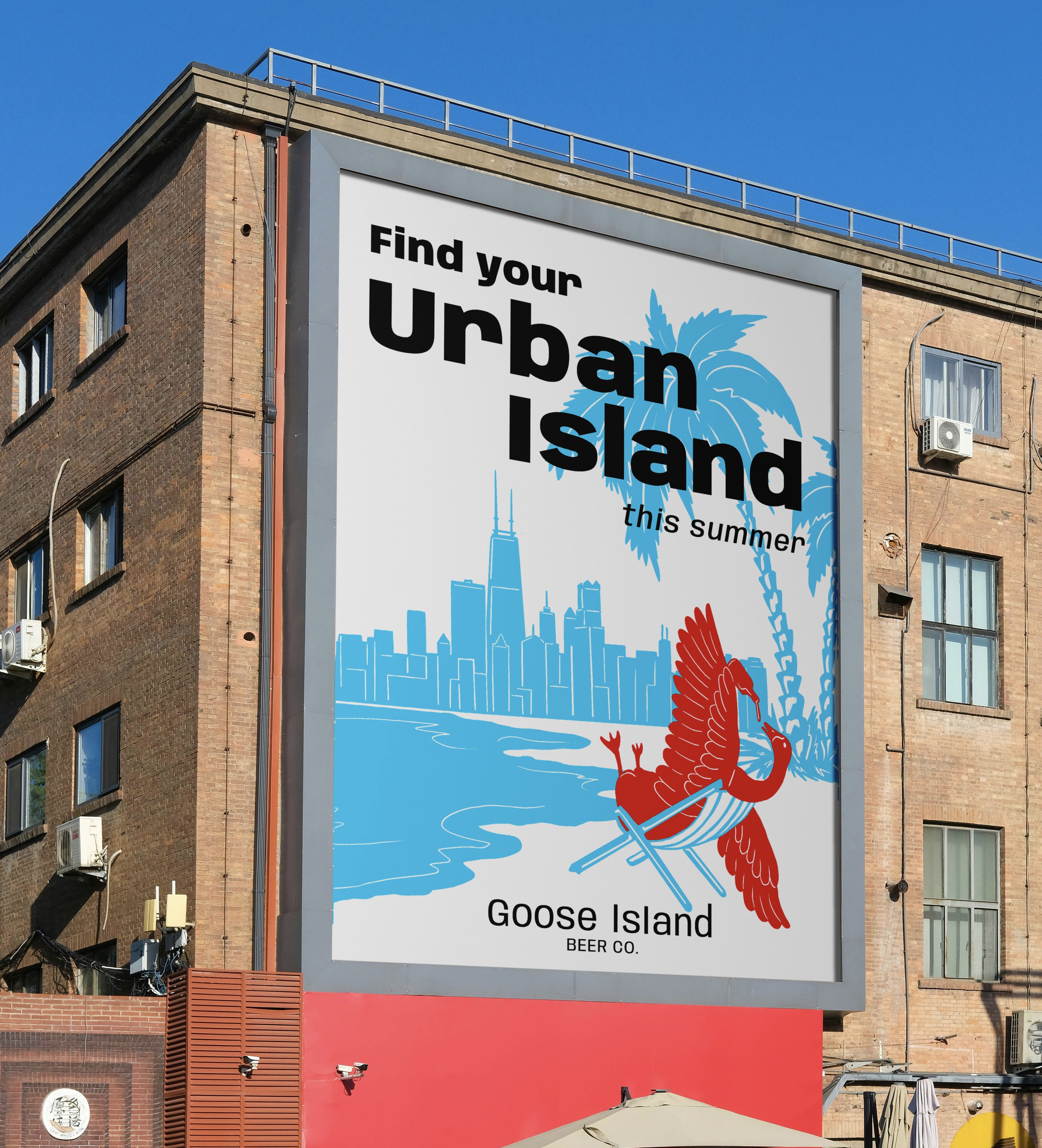 This project explores a lighter summertime take on Chicago's iconic Goose Island beer/brewing company brand. It features bright colors inspired by Chicago's flag and the light heartedness of warmer months. It plays on the idea of finding your oasis in the city, especially since Chicago has beaches along lake Michigan which feature a view of the skyline as well as the water.