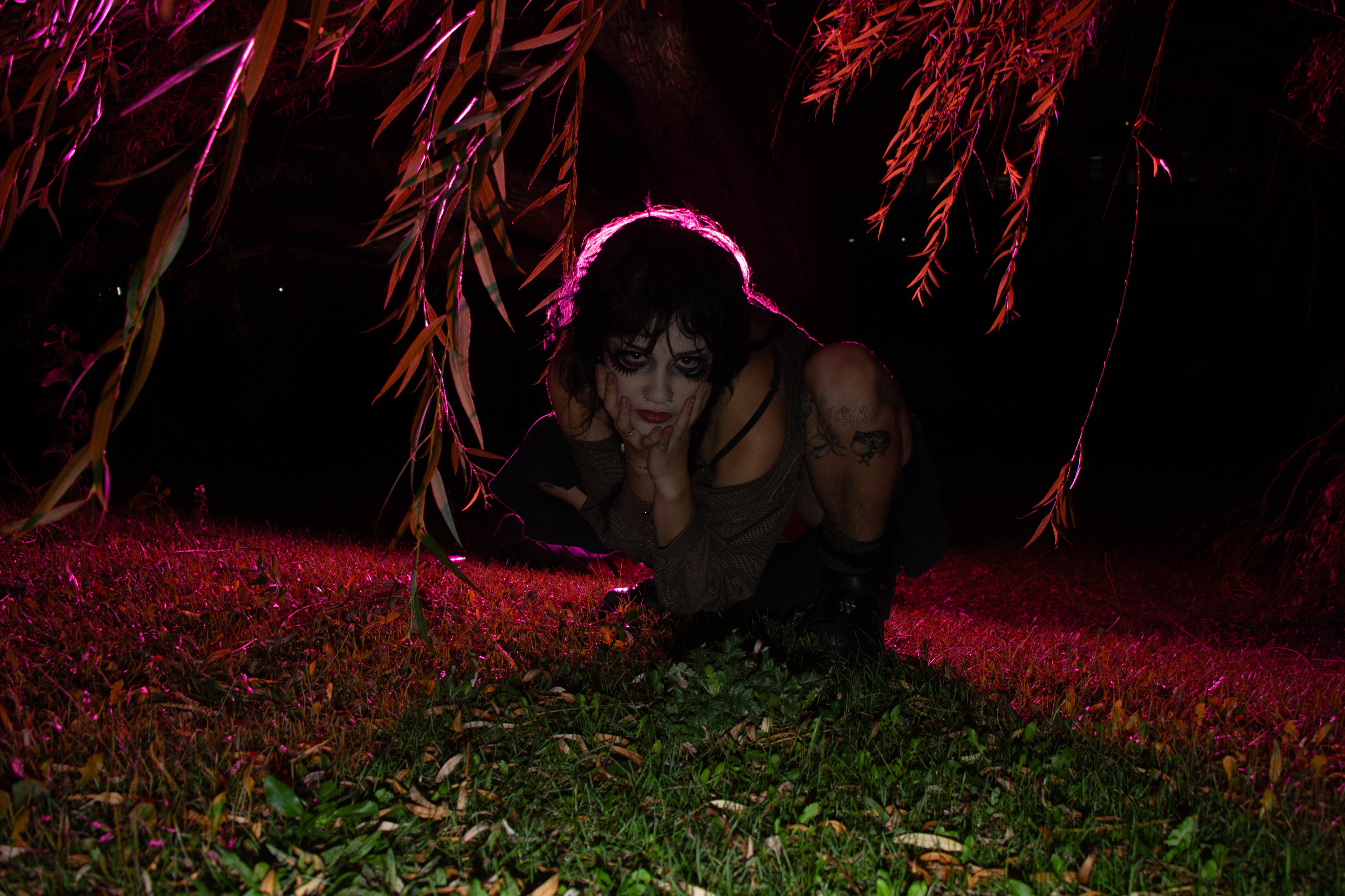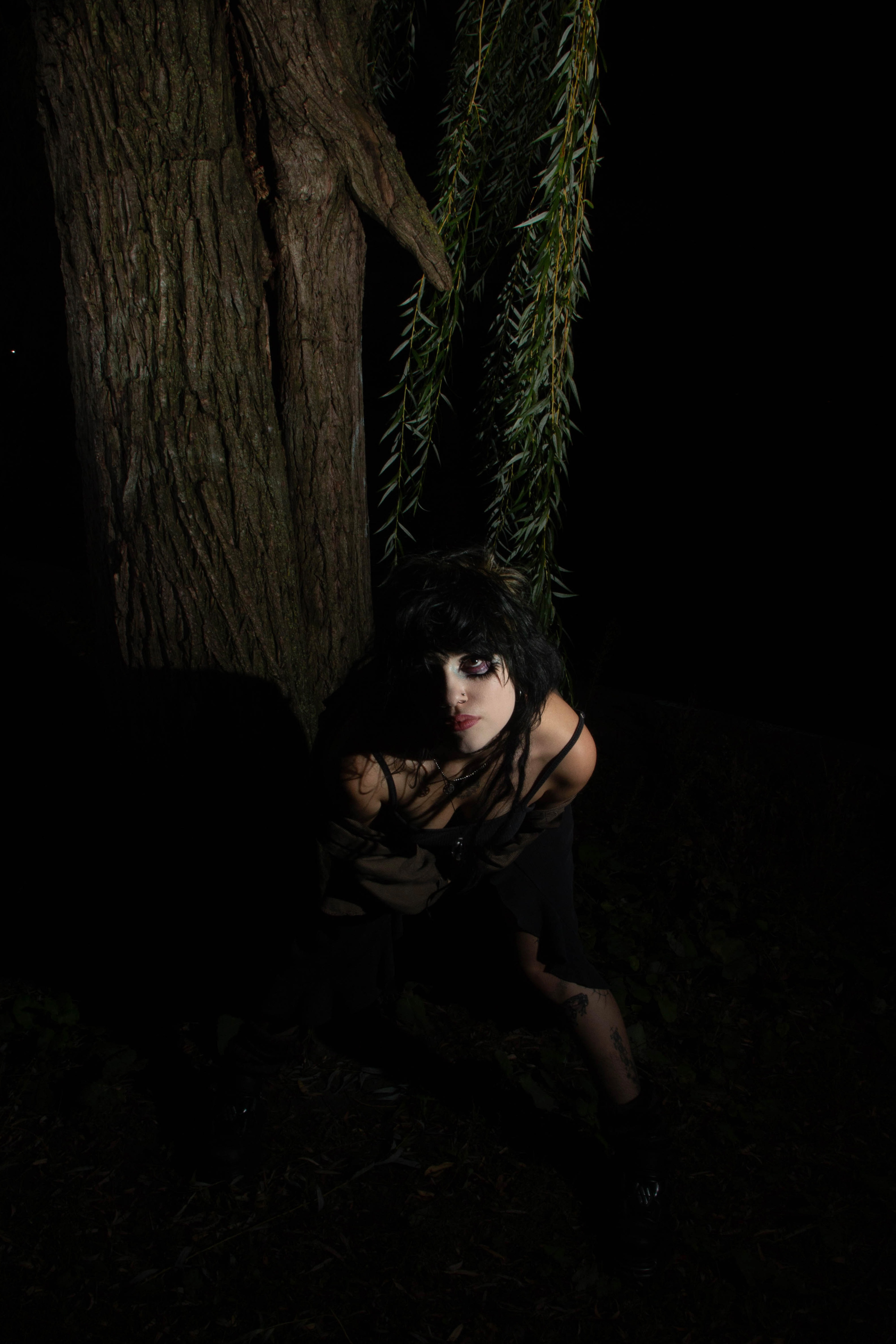 When modeling, I focused on staying low and having my body in an unnatural, and seemingly uncomfortable crouched position. This creates an erie feeling and shows that I am unsure and not confident about coming back into the world.
