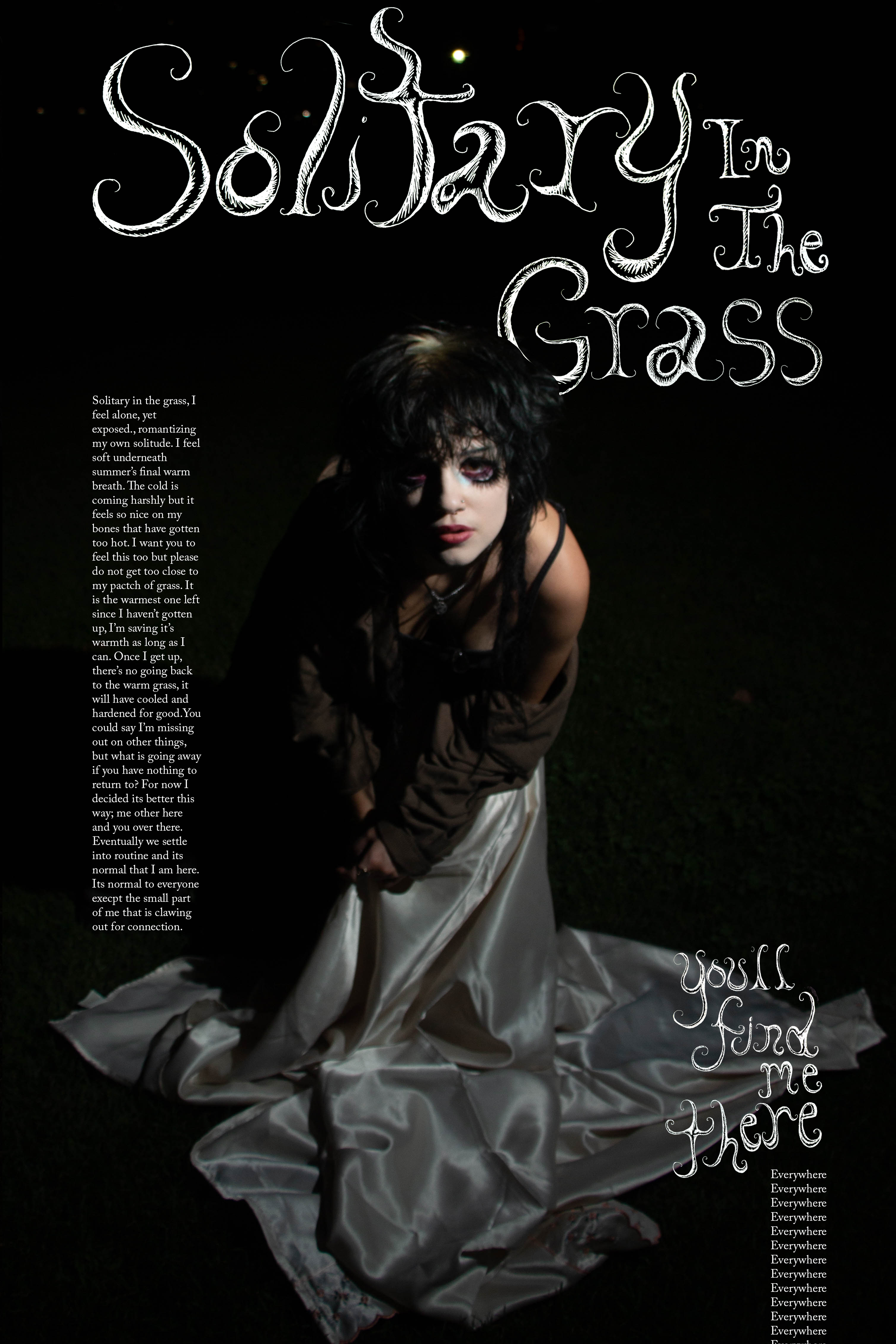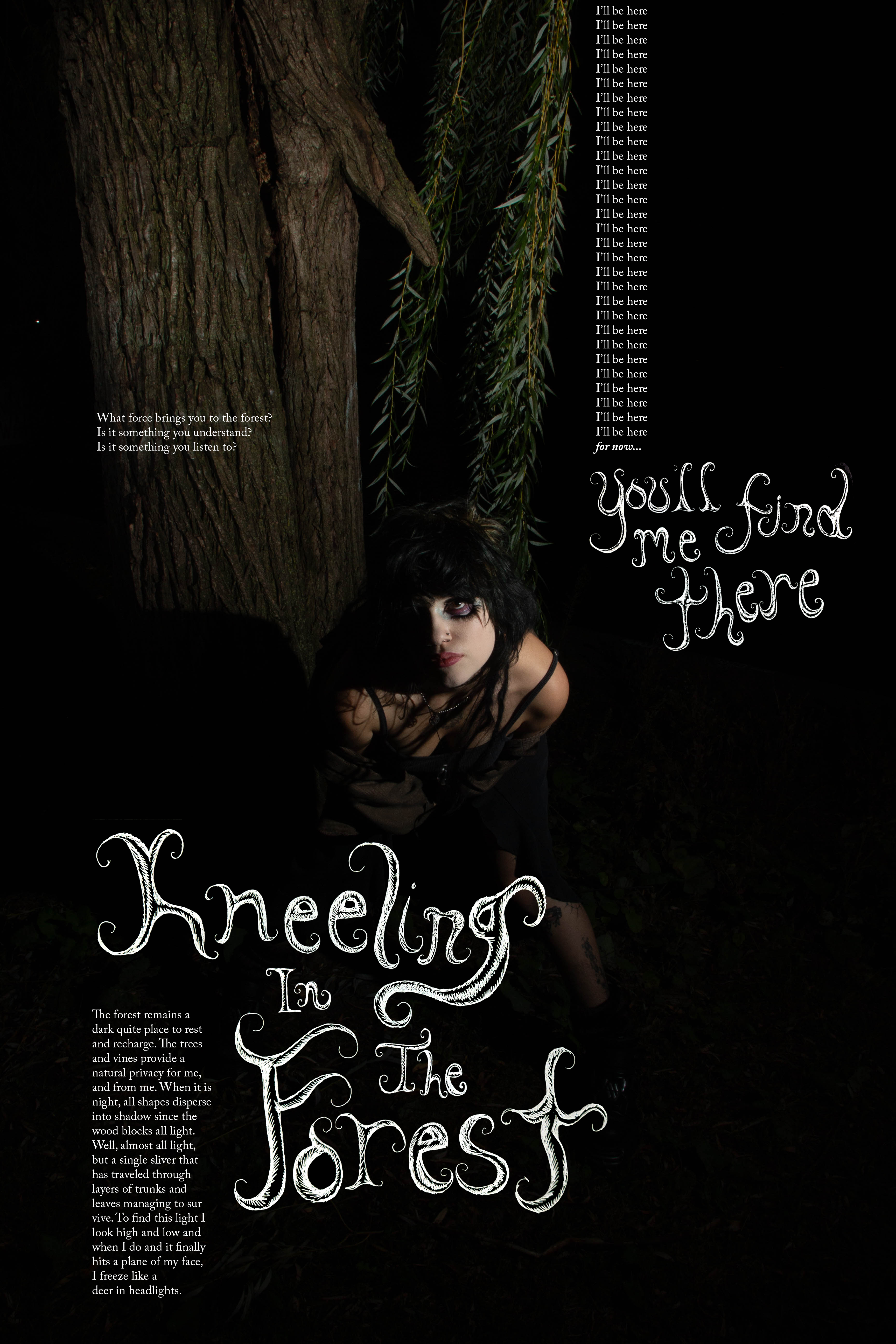This project was done in collaboration with photographer Jayie Chou and lighting assistant Haven Overton. We set out to create images that tell a story of isolation and re-emerging from a time of self reflection. We do this through harsh and limited lighting that leaves large areas of darkness for the figure to emerge from. These large areas of darkness also create places for the typography to stand out from.