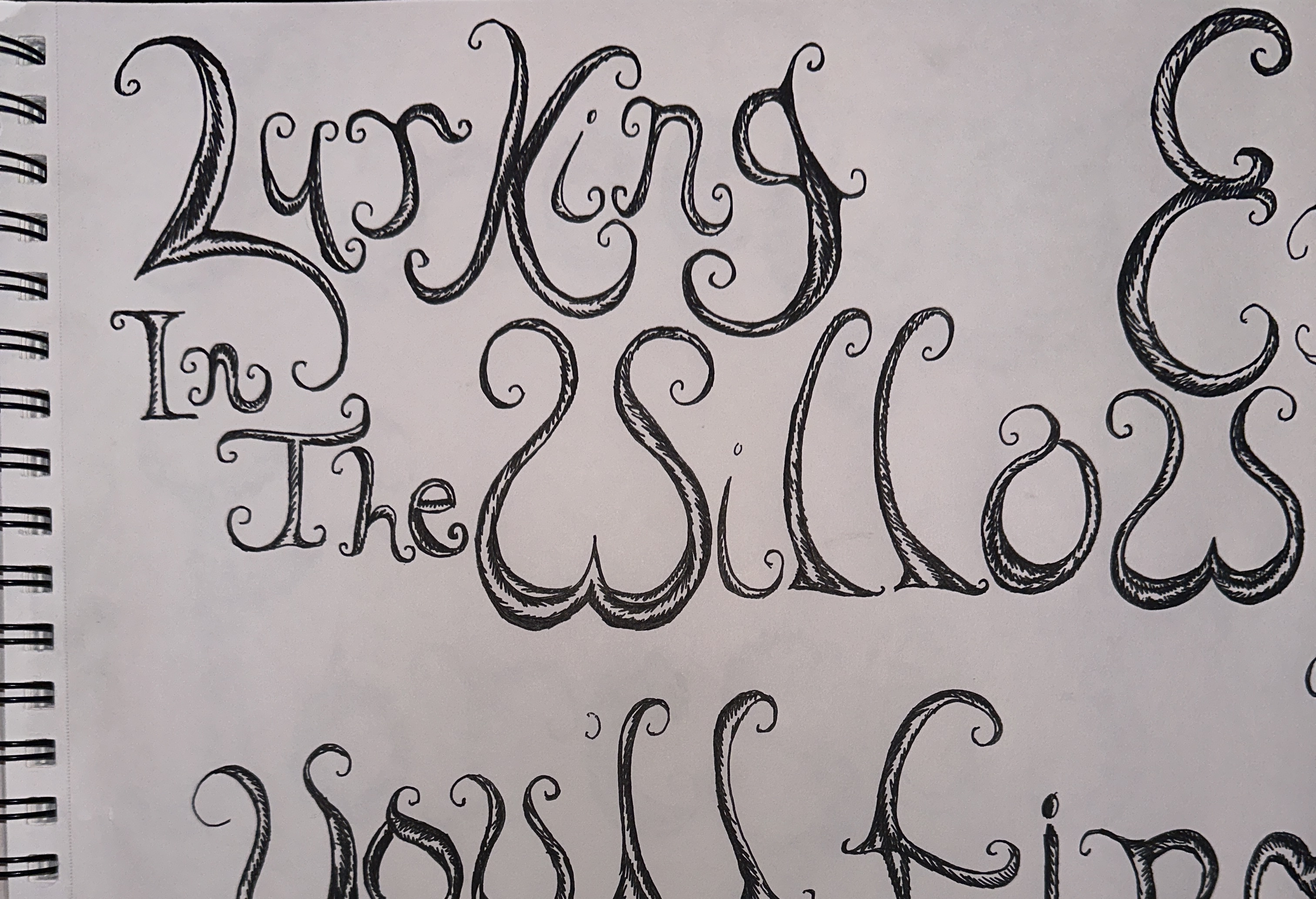 For these posters I created hand drawn typography to be paired with the classic serif font caslon. The drawn typeface is meant to compliment the swirling vines of a willow tree. The shading gives it a dimensionality that let's it also emerge from the page like the subject is doing from the darkness in the image. I chose to pair it with caslon because I wanted a simple serif font that mimics the variation in line weight of the hand drawn type, but is easy to read and doesn't steal the show.